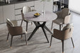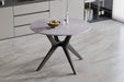 Het glanzende stenen blad geeft de tafel een luxueuze uitstraling en is tegelijk onderhoudsvriendelijk en duurzaam. De slanke, moderne pootconstructie zorgt voor stabiliteit zonder het geheel zwaar te laten ogen, waardoor de tafel luchtig en elegant blijft.