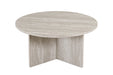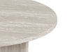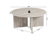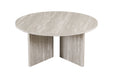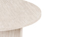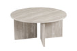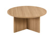 Deze ronde salontafel combineert een strak design met een warme, natuurlijke uitstraling. Het ronde tafelblad rust op een stevige kruisvoet, wat zorgt voor een modern en stabiel geheel met een architecturale look.