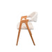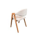 De Ronda stoel onderscheidt zich door haar speelse combinatie van zachte bekleding en vloeiend gevormde houten armleuningen. Het ontwerp oogt licht en vriendelijk, terwijl de stevige houten poten zorgen voor een stabiele en duurzame basis.